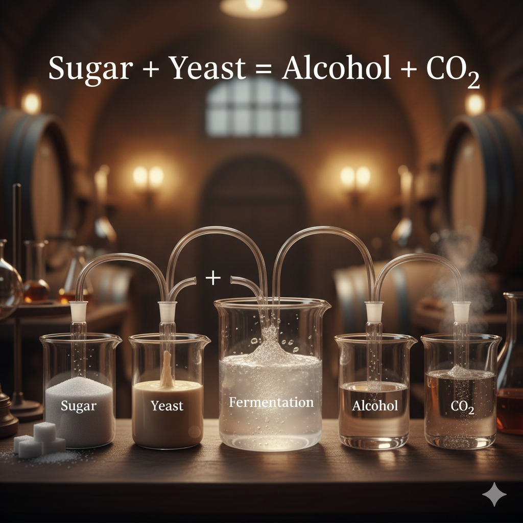 糖份+酵母就會產出酒精+二氧化碳